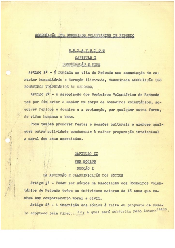Em ata de 20 janeiro 1950 o Governo Civil do distrito de Évora informa que deve esta câmara municipal proceder à elaboração dos estatutos da associação dos bombeiros voluntários que pretende constituir para que logo que sejam aprovados se adquirir o material considerado indispensável pela verba em poder deste Município.