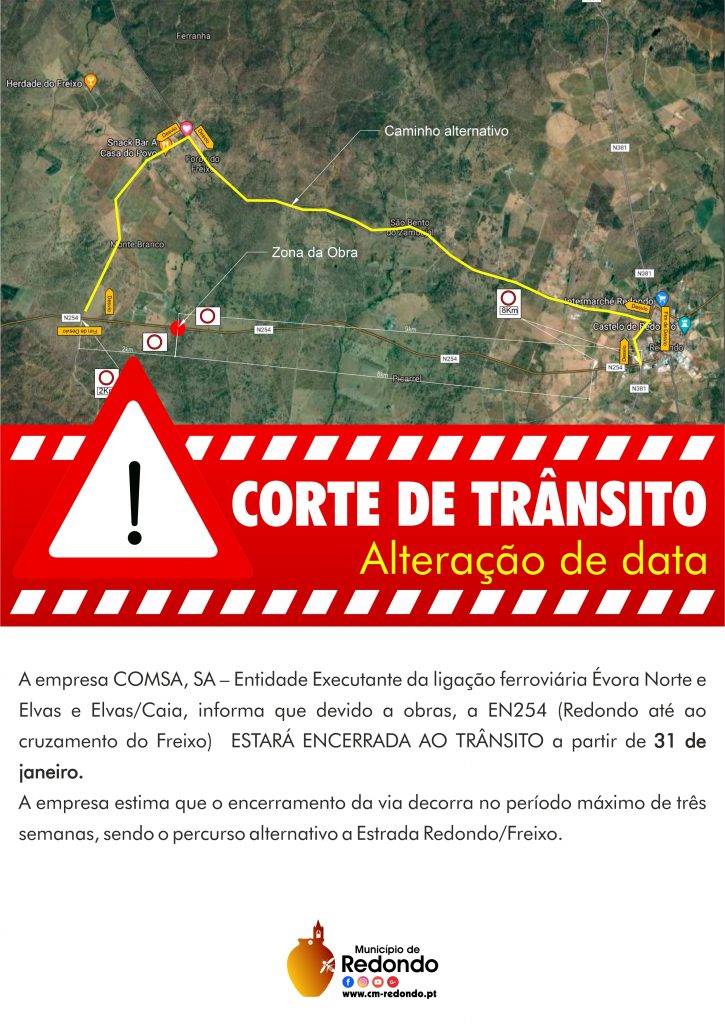 Alteração de data do corte de trânsito devido a atrasos na obra
