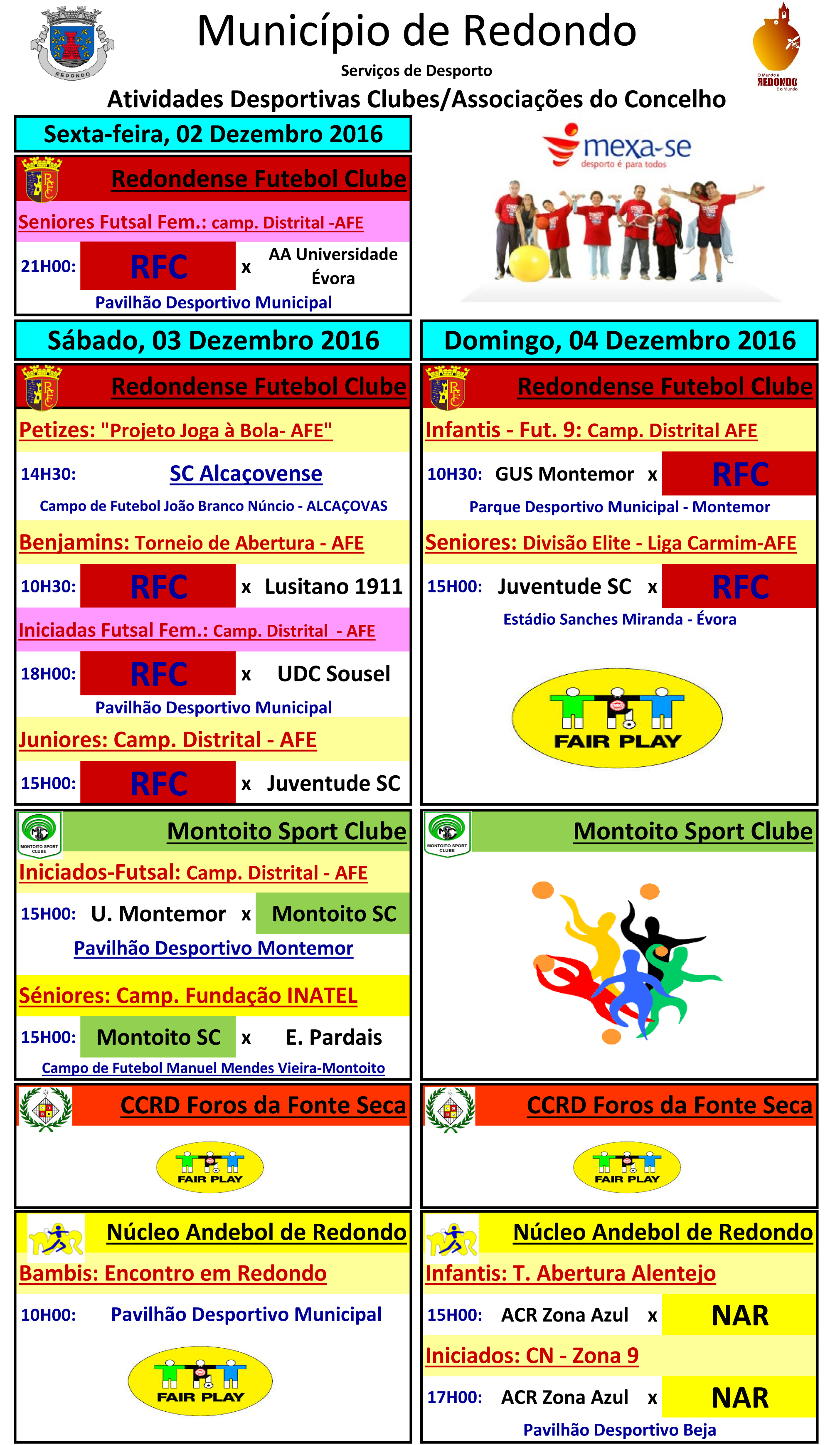 Consulte as atividades desportivas dos Clubes / Associações do Concelho de Redondo.