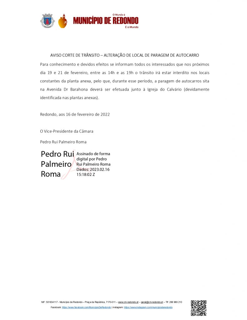 Início > Notícias > Aviso | Corte de Trânsito | 19 e 21 de fevereiro | Redondo