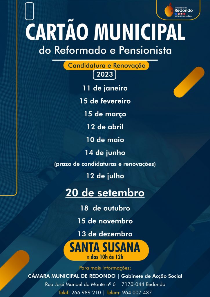 Início > Notícias > Candidaturas e Renovações do Cartão Municipal do Reformado e Pensionista – Santa Susana