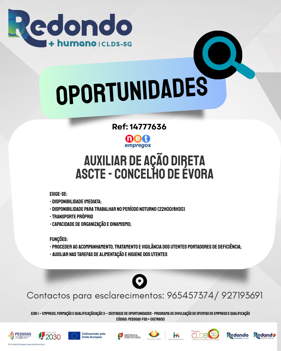 CLDS-5G Redondo + Humano | Eixo 1: Ação 3 – Dest@que de oportunidades – Auxiliar de Ação Direta (Concelho de Évora)