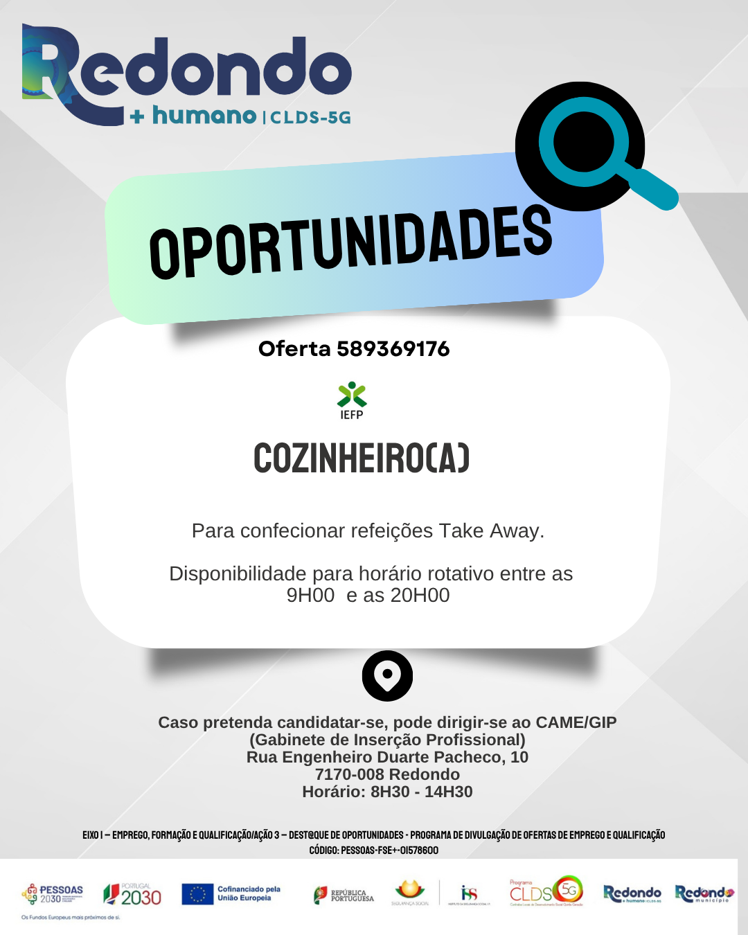 CLDS-5G Redondo + Humano | Eixo 1: Ação 3 – Dest@que de oportunidades – Cozinheiro (a)