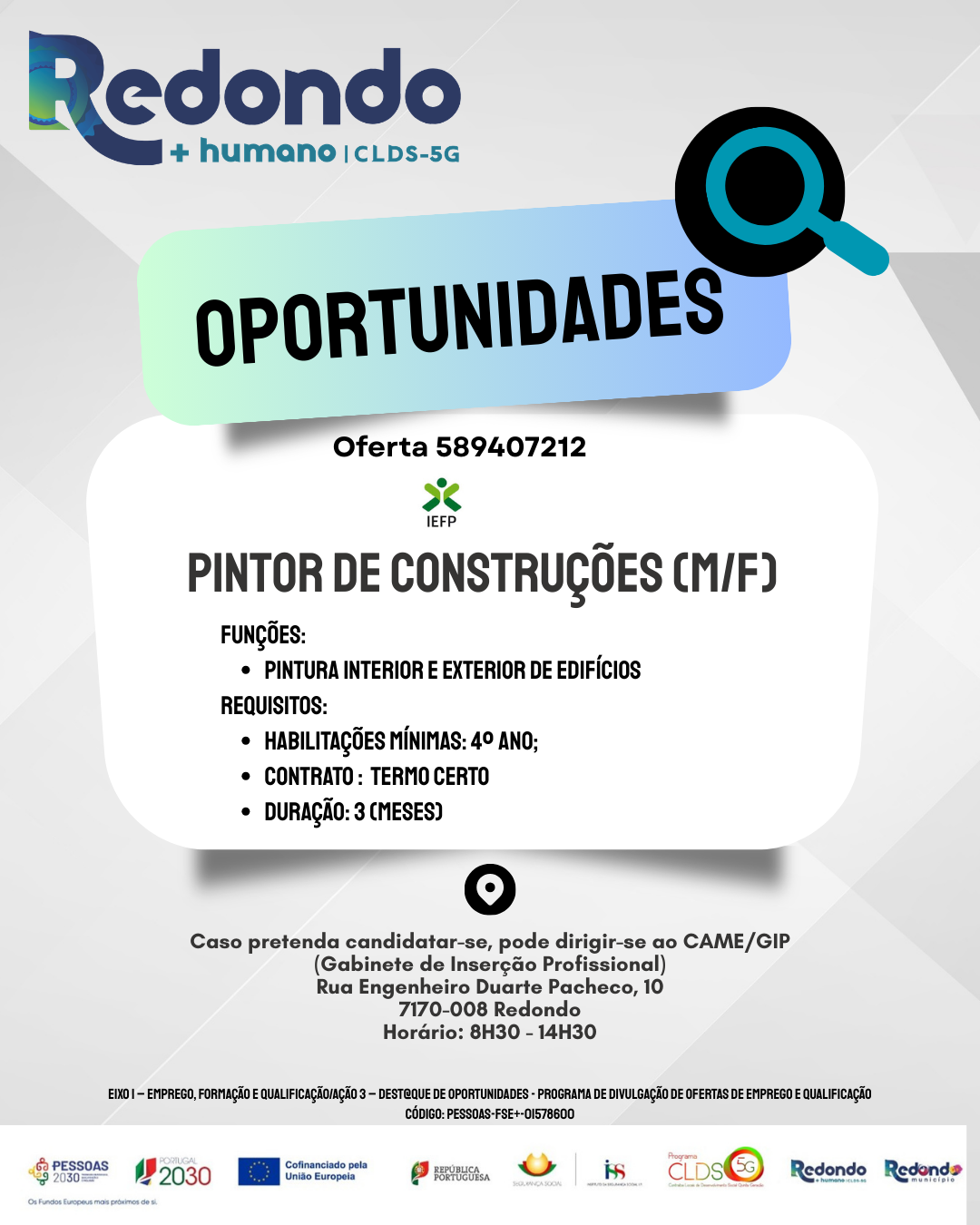 CLDS-5G Redondo + Humano | Eixo 1: Ação 3 – Dest@que de oportunidades – Pintor de construções