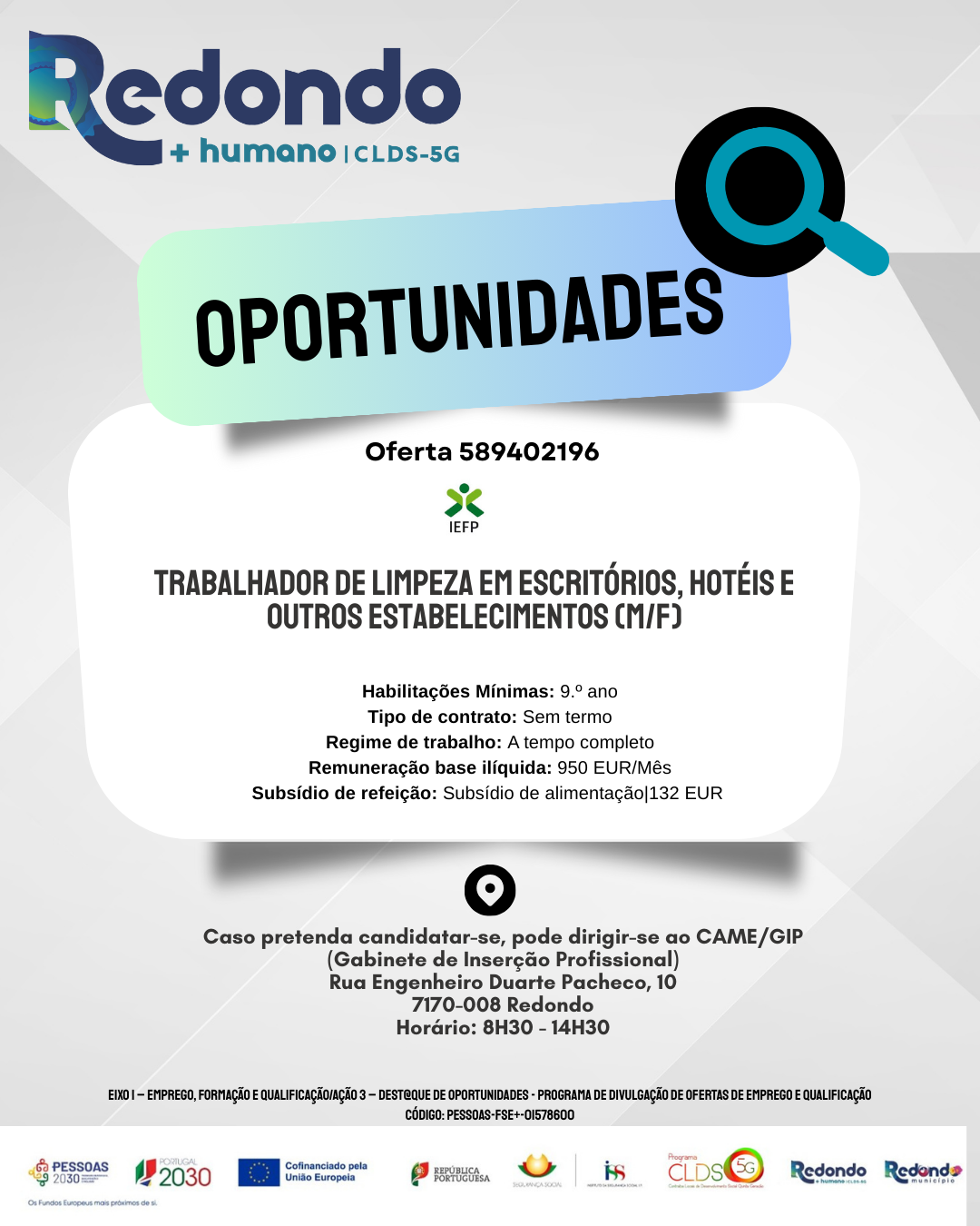 CLDS-5G Redondo + Humano | Eixo 1: Ação 3 – Dest@que de oportunidades – Trabalhador de limpeza em escritórios, hotéis e outros estabelecimentos