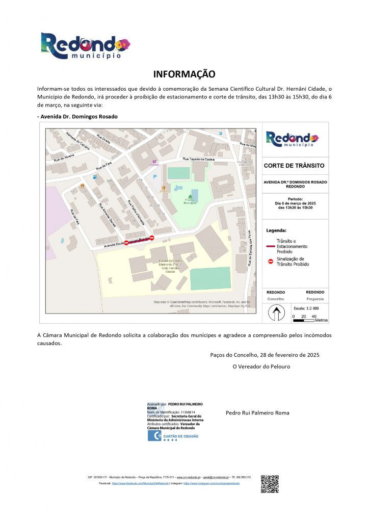 Corte de trânsito | Semana Científico Cultural Dr. Hernâni Cidade | 06 de março | Redondo