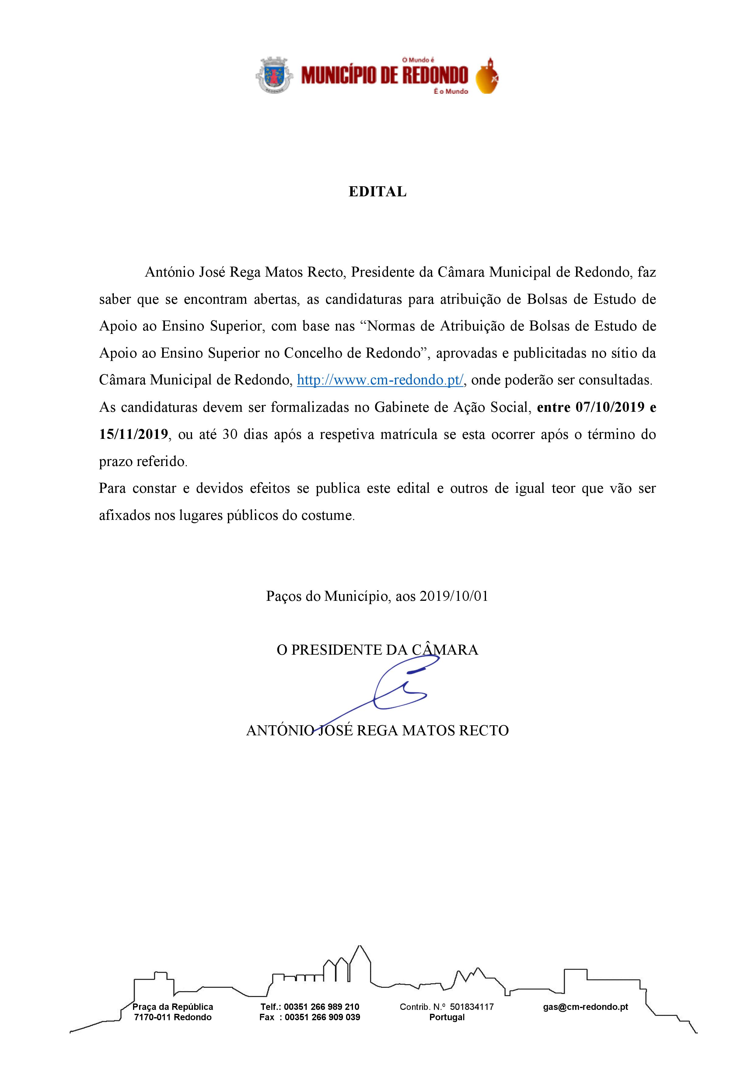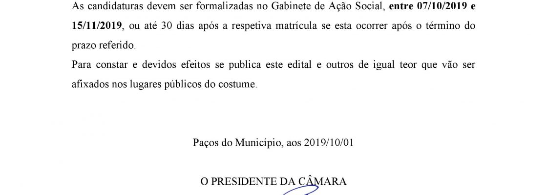 Início > Notícias > Edital – Candidaturas para atribuição de Bolsas de Estudo de Apoio ao Ensino Superior