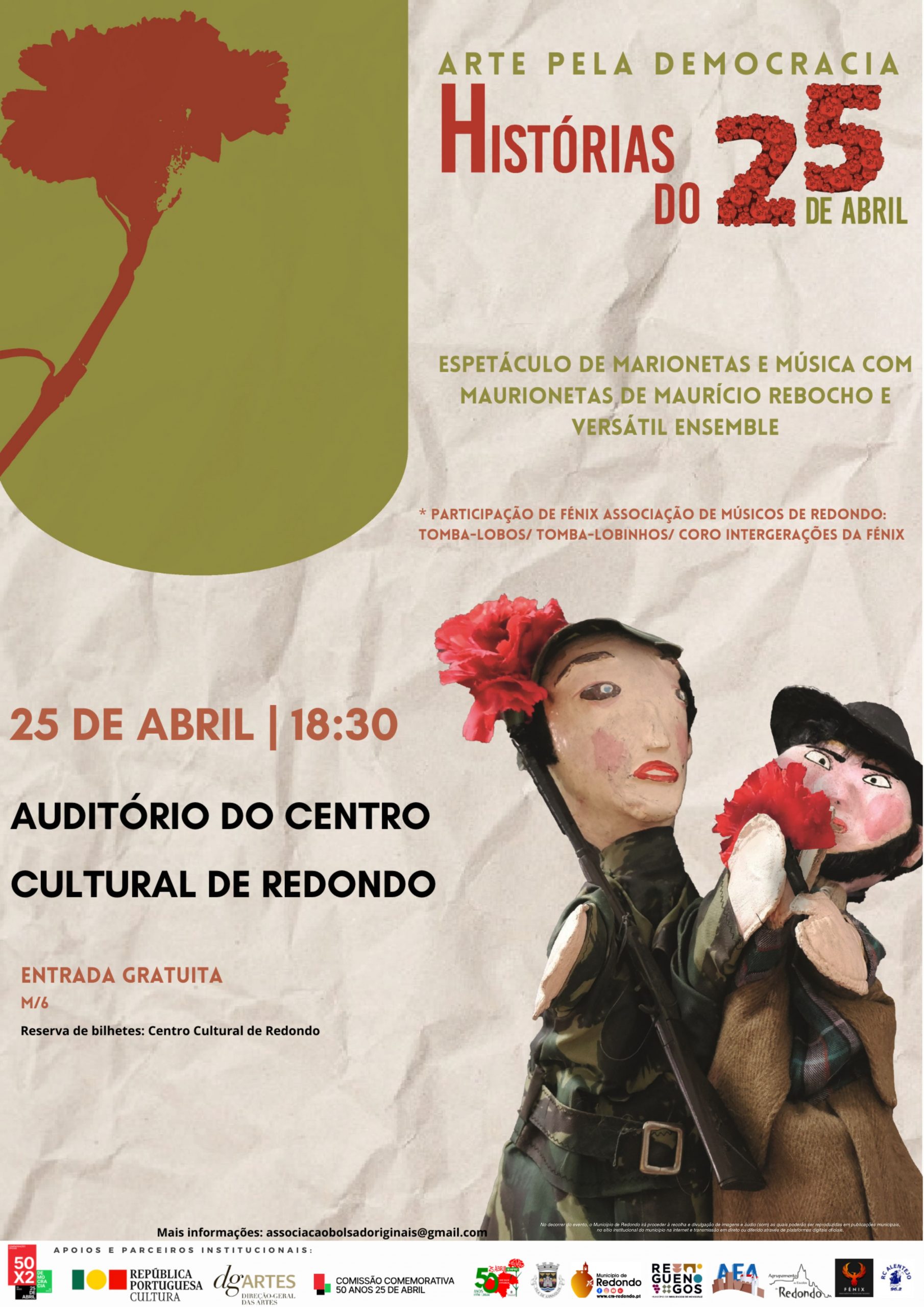 Início > Eventos > Arte pela Democracia | Espetáculo de marionetas e música “Histórias do 25 de Abril” | 25 de abril | 18h30 | Auditório CCR