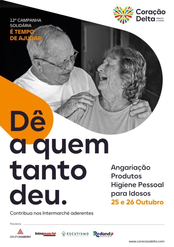 Com o propósito de melhorar a qualidade de vida da população sénior em situação de vulnerabilidade, a Associação de Solidariedade Social Coração Delta lança a 12ª edição da campanha “É tempo de Ajudar”. Nos dias 25 e 26 de outubro, em mais de 100 lojas Intermarché dos distritos de Beja, Castelo Branco, Évora, Faro, Leiria, Portalegre, Setúbal e Santarém, será feita uma recolha de produtos de higiene pessoal, levando conforto, dignidade e cuidados básicos a quem mais precisa.