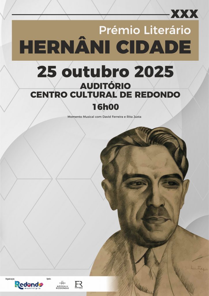 Início > Eventos > Cerimónia de entrega do trigésimo Prémio Literário Hernâni Cidade | 25 de outubro | 16h00 | Auditório do Centro Cultural de Redondo