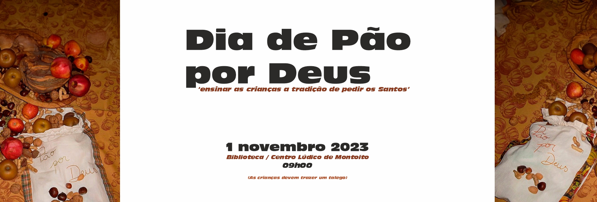 Início > Eventos > Dia do Pão por Deus | 01 de novembro | 09h00 | Biblioteca/ Centro Lúdico de Montoito