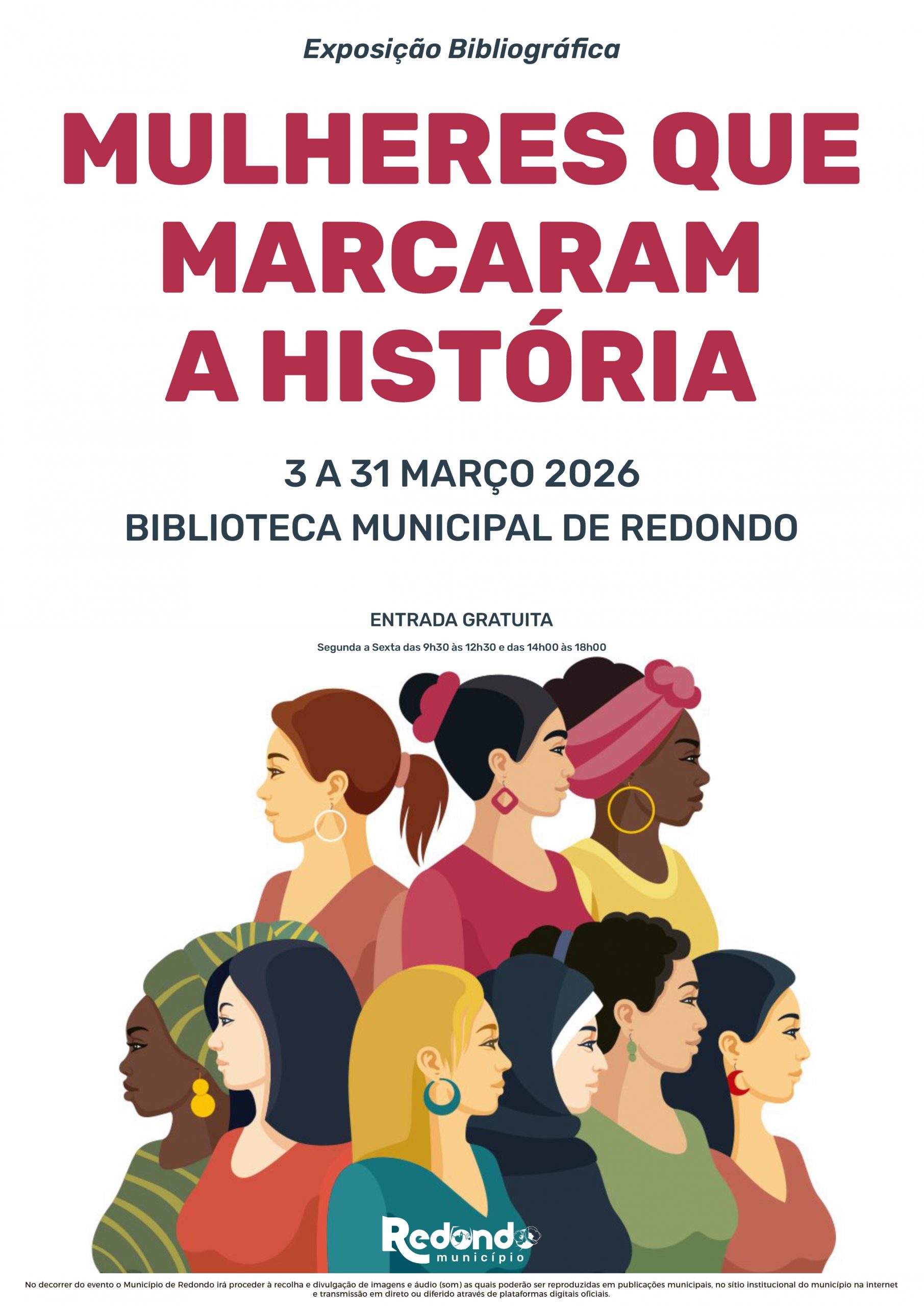Início > Eventos > Exposição bibliográfica “Mulheres que marcaram a história” | de 03 a 31 de março | Biblioteca Municipal de Redondo