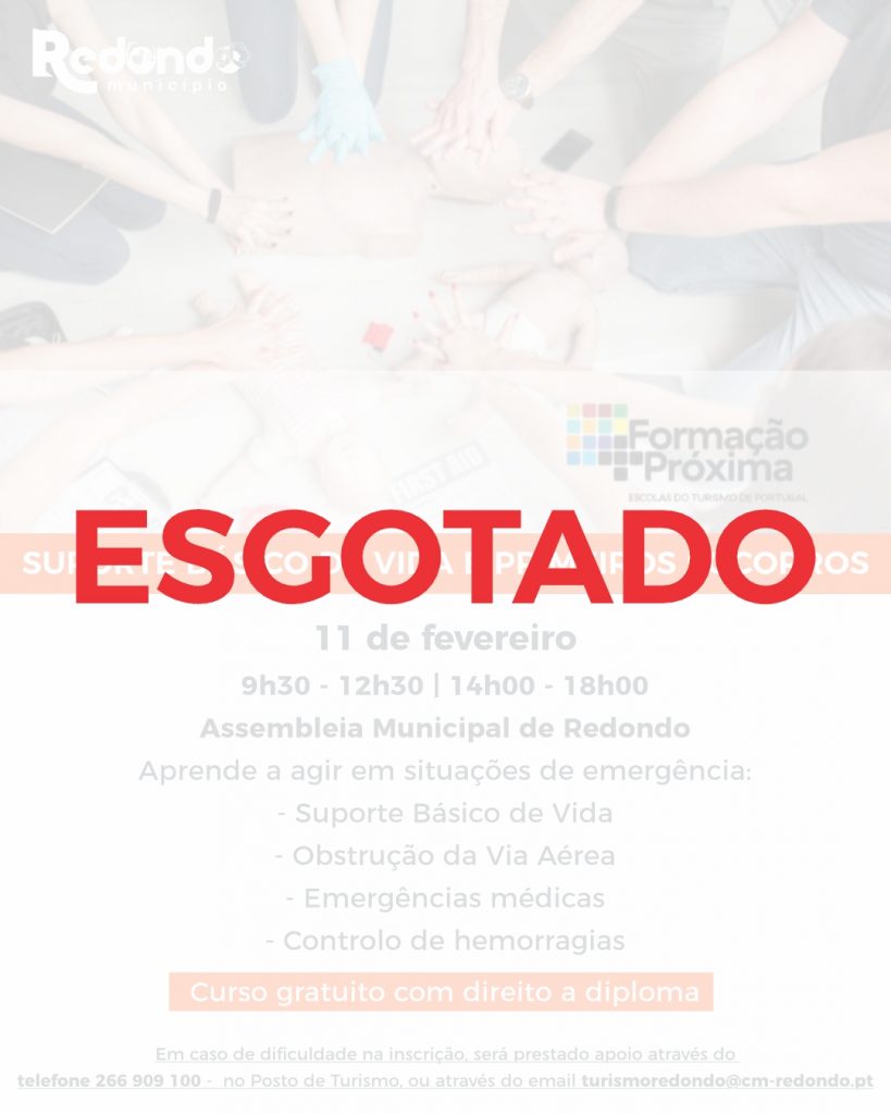 Início > Eventos > ESGOTADO: Formação gratuita – Suporte Básico de Vida e Primeiros Socorros | 11 de fevereiro | Assembleia Municipal de Redondo