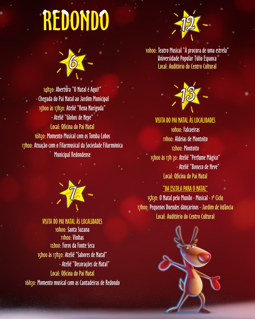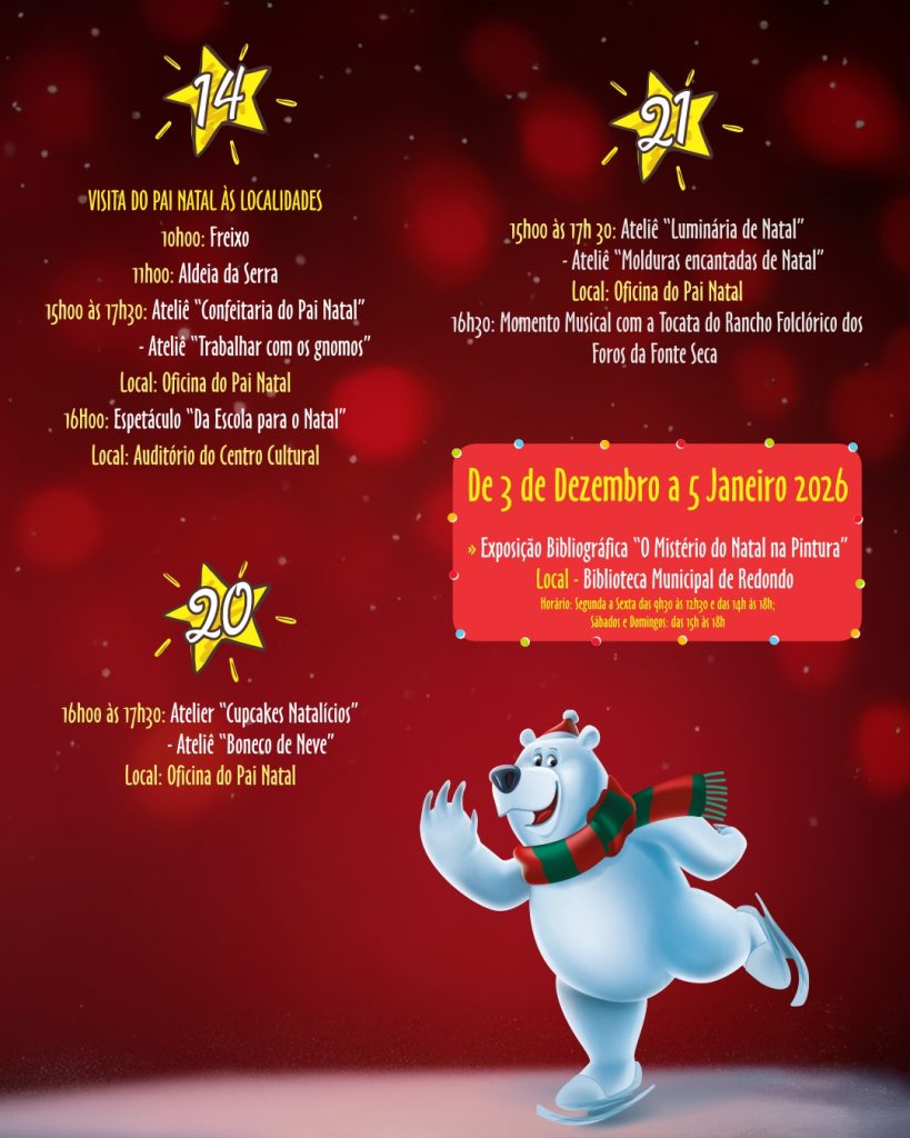 Início > Eventos > O Natal é Aqui! | de 06 a 21 de dezembro | Redondo e Montoito: Conhece o programa e junta-te a nós para celebrar a época mais mágica do ano!