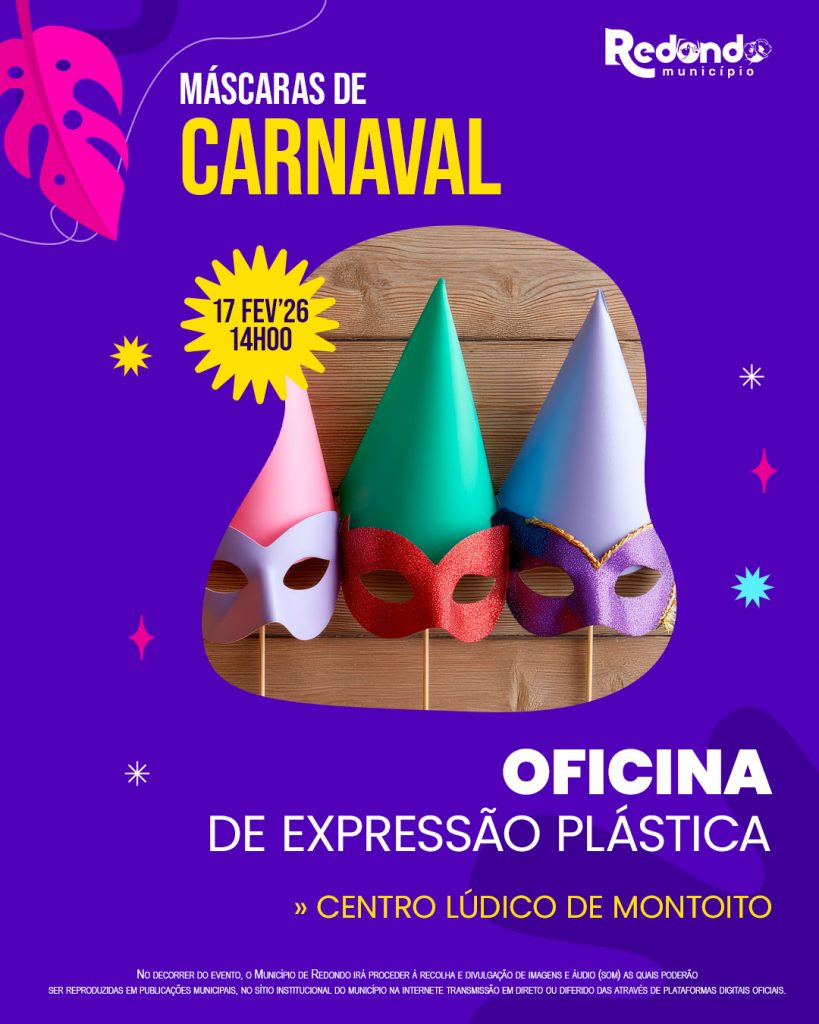 Oficina de expressão plástica: Máscaras de Carnaval | 17 de fevereiro | 14h00 | Centro Lúdico de Montoito
