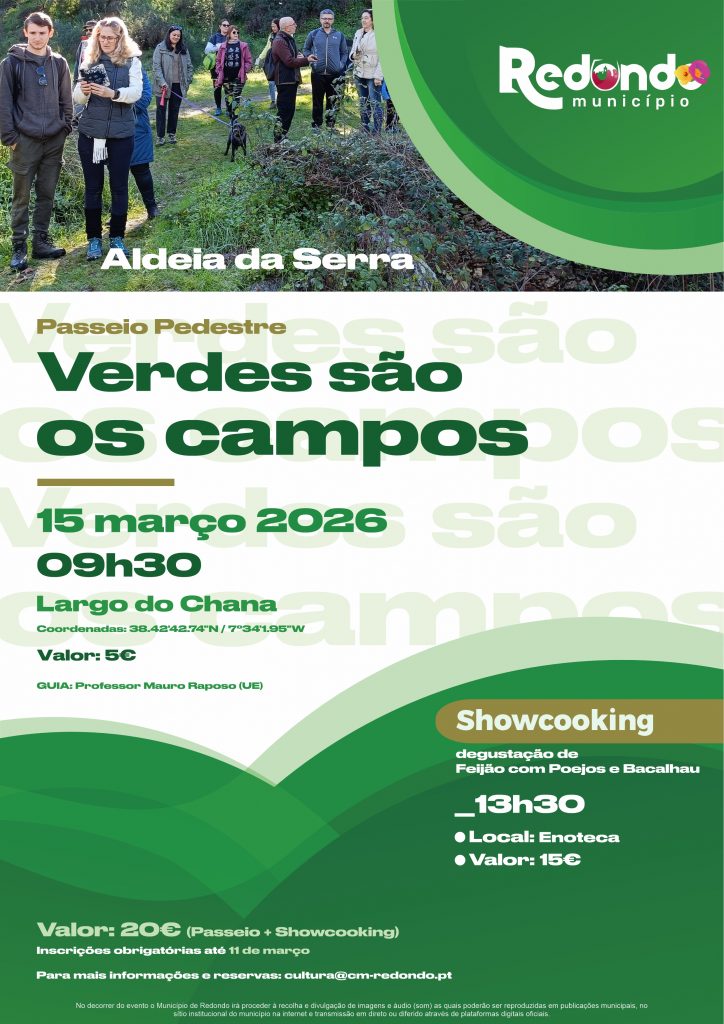 Início > Eventos > Passeio Pedestre “Verdes são os Campos” | Degustação de Feijão com poejos e bacalhau | 15 de março | 09h30 | Largo do Chana (Aldeia da Serra)