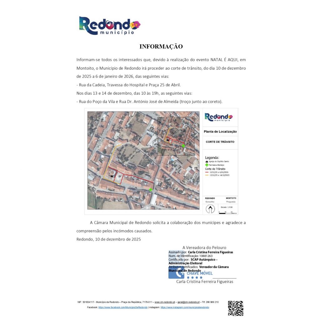 Informação: Corte de trânsito | O Natal é Aqui! | Montoito