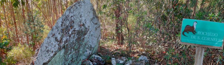 aqui atado. Atou o chibo a um pé do santo e foi-se embora. O pobre do chibo viu-se sozinho na capela e desata a tentar fugir. Tantas voltas deu que acabou por arrancar o santo do altar! O pastor já ia no seu caminho. De repente vê o chibo a correr com o santo atrelado aos saltos pelo monte abaixo e grita: – Agarra-te às estevas, mãos de aranha! Primeiro não o querias e agora corres atrás dele! O chibo e o santo acabaram a correria junto de uma pedra – hoje conhecida por Rochedo de São Cornélio – onde, até aos anos 70 do século passado, os pastores deixavam