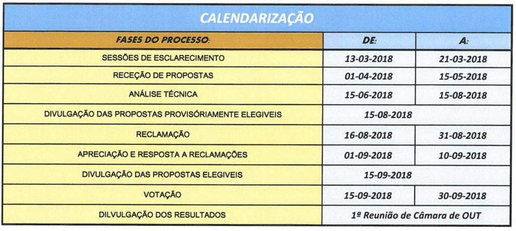 Calendarização – Sessões de Esclarecimento: