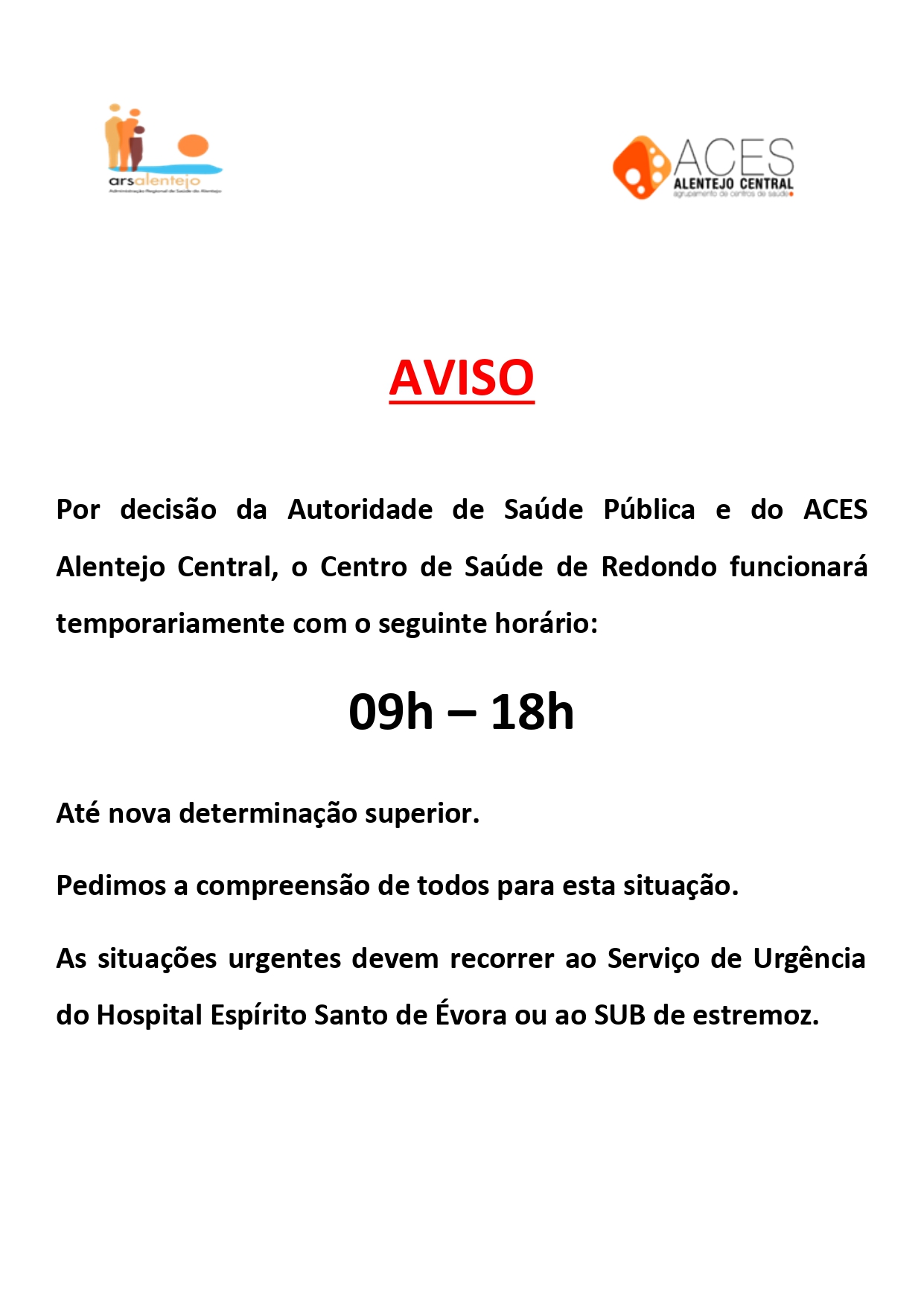Início > Notícias > Por solicitação do Centro de Saúde de Redondo, informamos: