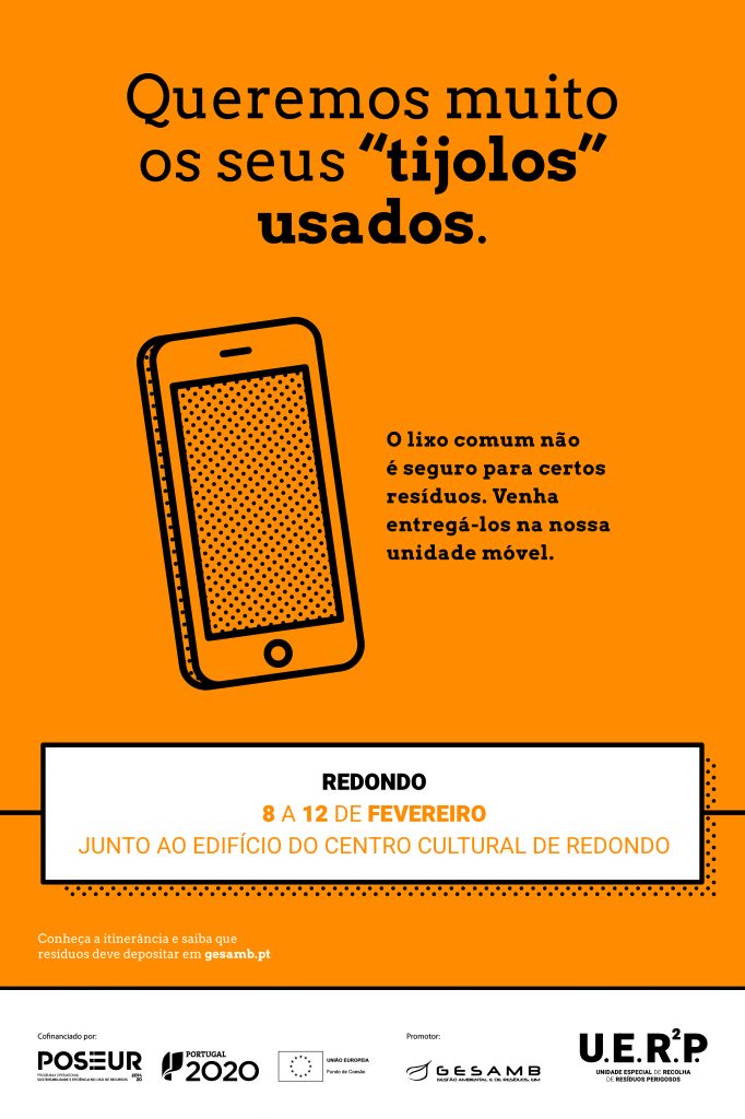 De 8 a 12 de fevereiro, a Unidade Especial de Recolha de Resíduos Perigosos está à espera dos seus resíduos perigosos, junto ao edifício do Centro Cultural de Redondo.
