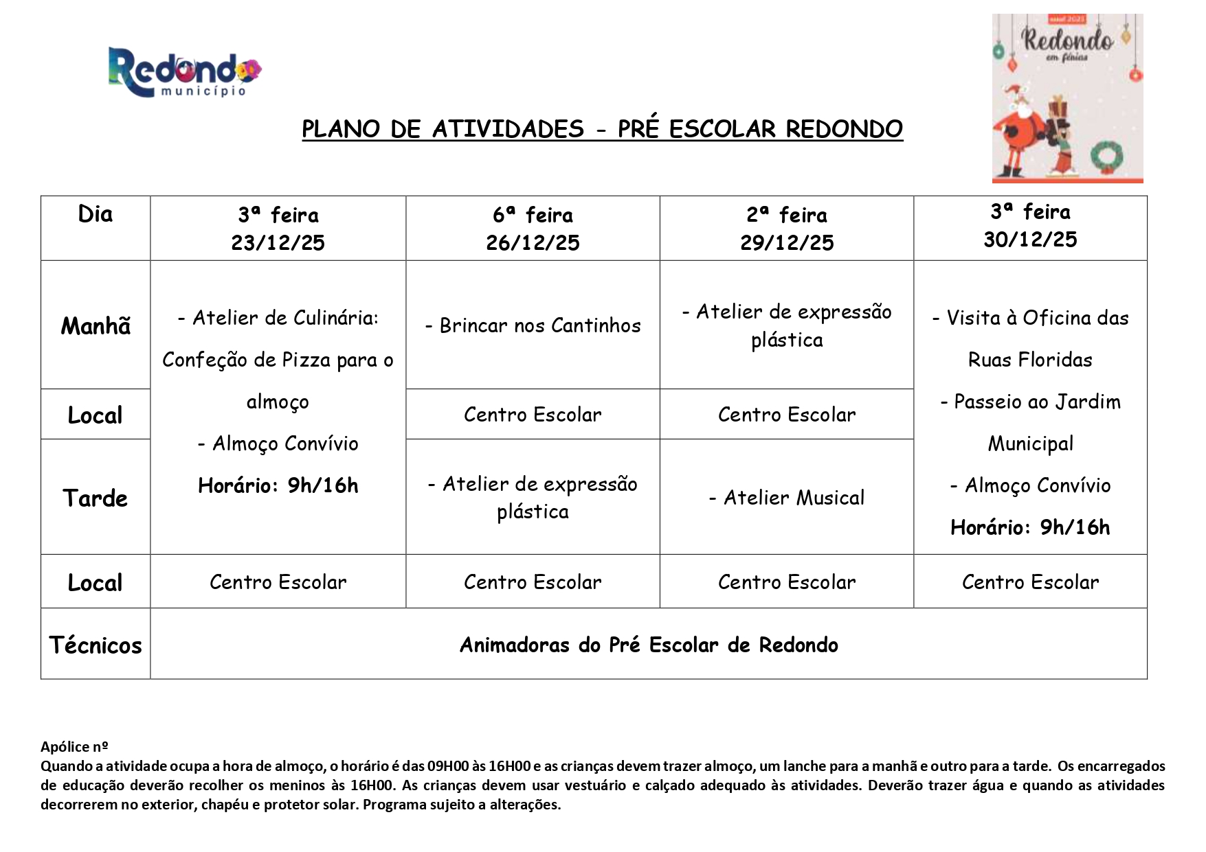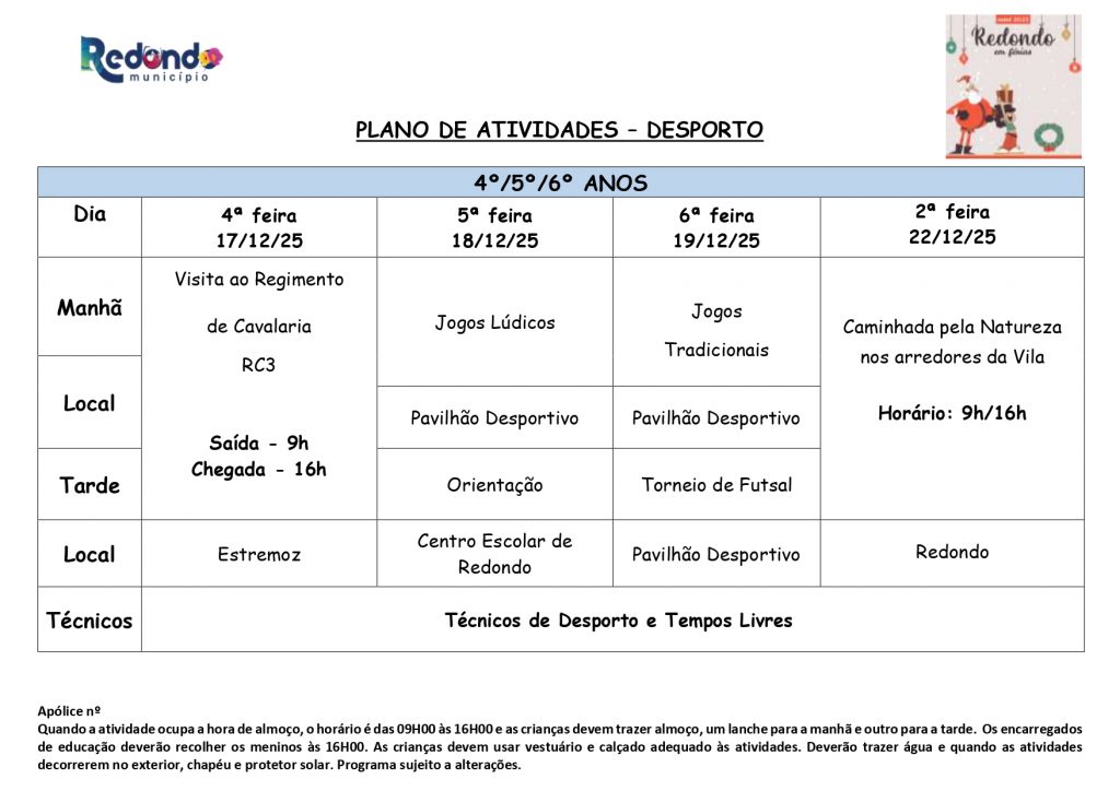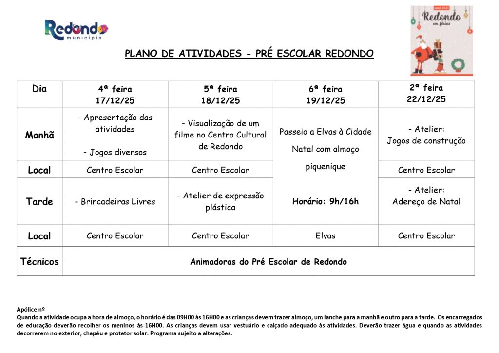 Início > Notícias > “Redondo em Férias” | Natal 2025 | Inscrições: de 02 a 12 de dezembro